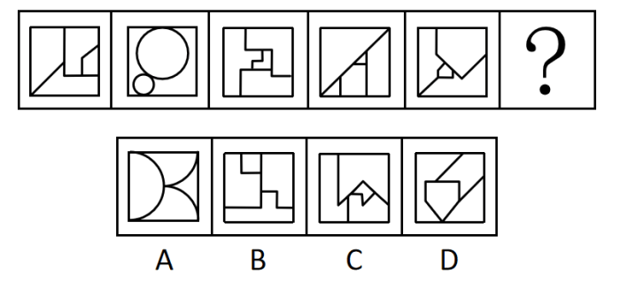 85.从给出的选项中,选择最合适的一个图形填入问号处,使之呈现一定的规律性( )。