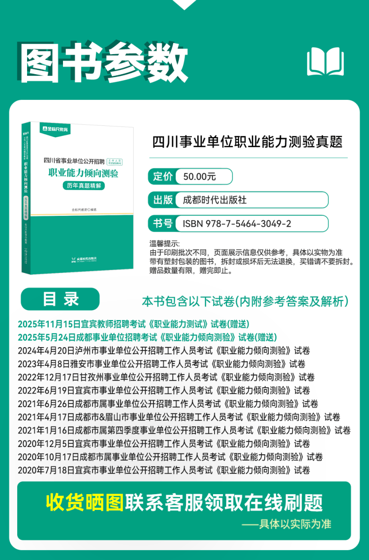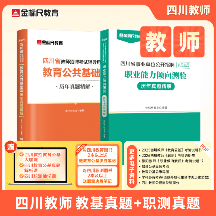 下单收货添加客服领取电子资料(微信:18121879436);四川教师 成都服务基层考试 教育公共基础真题+职业能力倾向测验真题,适用于德阳、绵阳、宜宾、雅安、泸州等地区教师招聘