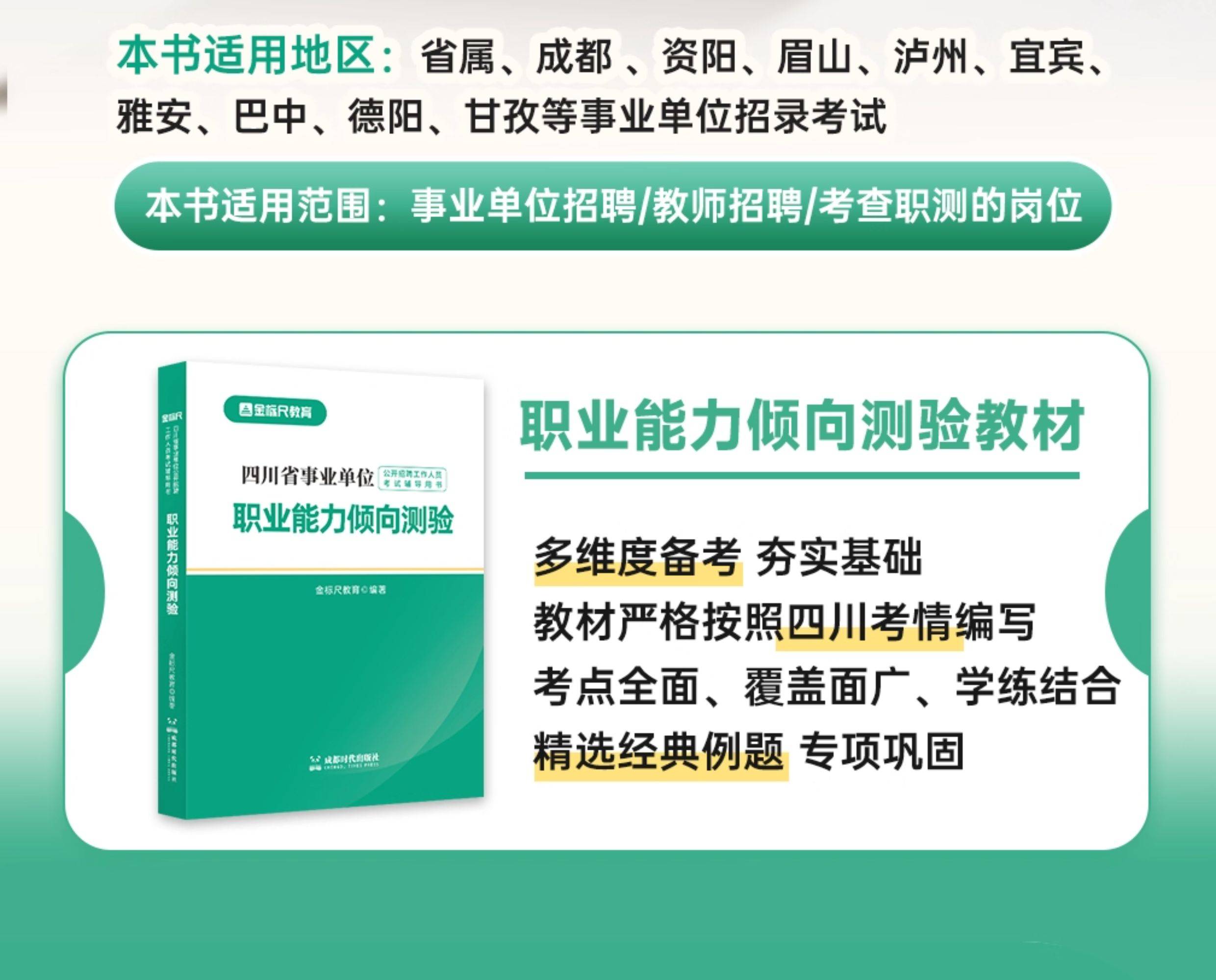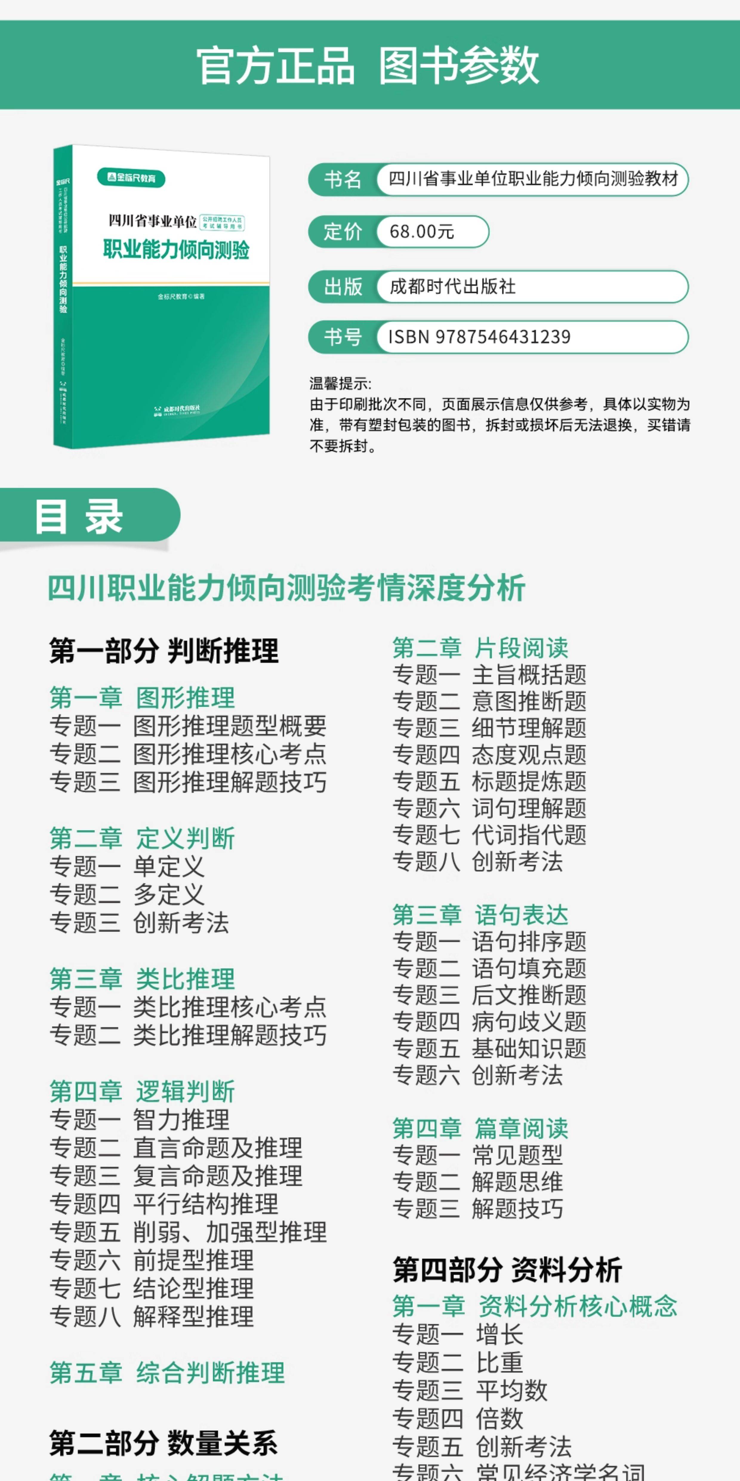 下单收货添加客服领取电子资料(微信:18121879436);四川《职业能力倾向测验》教材,适用于事业单位、教师招聘 职业能力倾向测验科目考试 注意事项!!!因图书为塑封包装,拆封后不支持退换