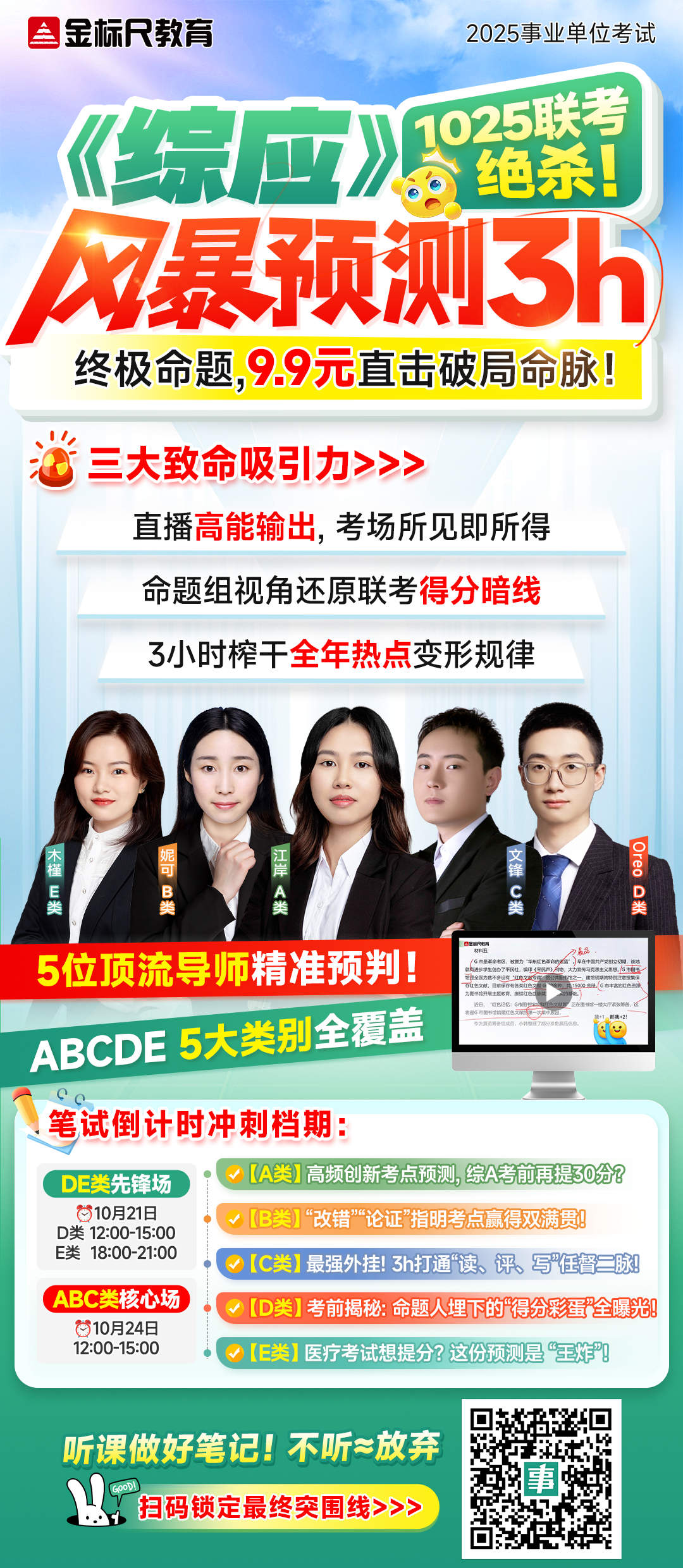 10月24日12:00-15:00直播,考前狂押!