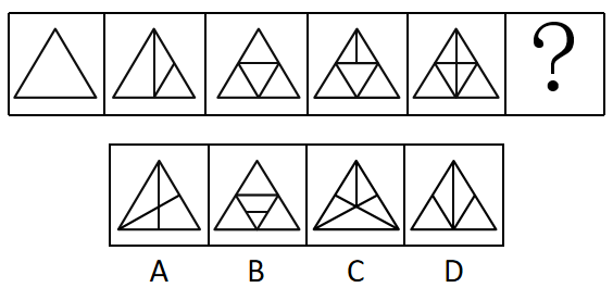 根据图形规律,填入问号处最适合的一项是( )。[img=43165401593.png]