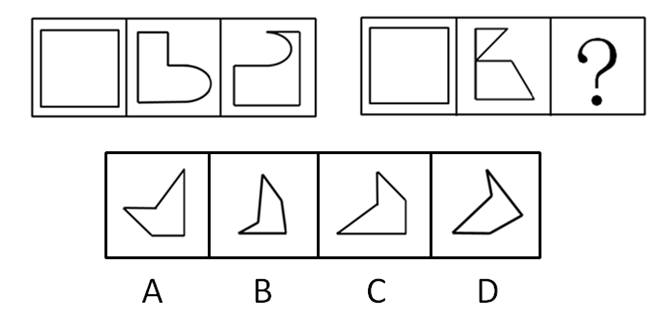 前一组图形中,第二个图形上下翻转后与第三个图形拼接,可以得到第一个图形。第二组图形也应符合此规律,显然只有A符合条件。故本题答案为A项。