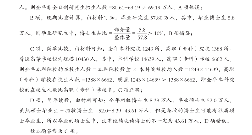 A 项,简单读数,由材料可知:全年研究生招生80.61万人,其中,全日制69.19万